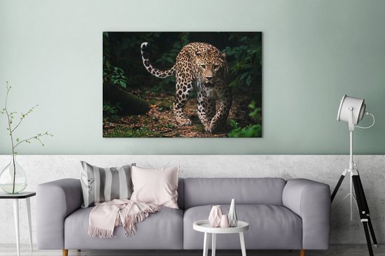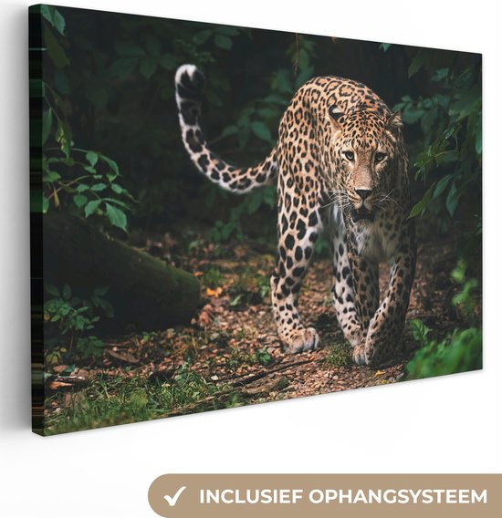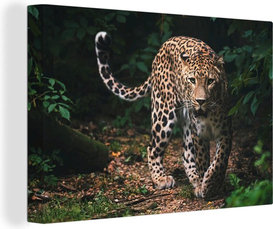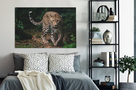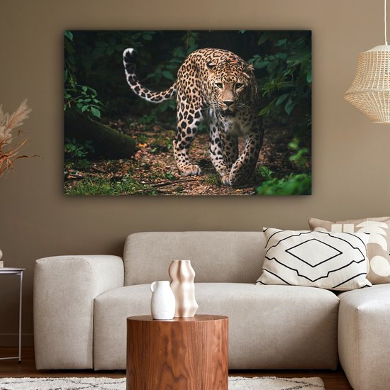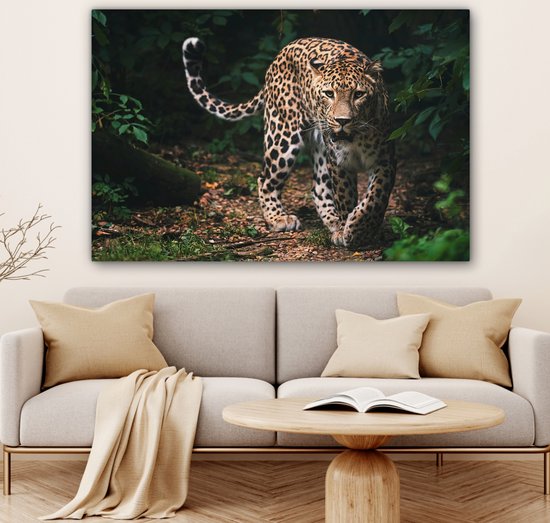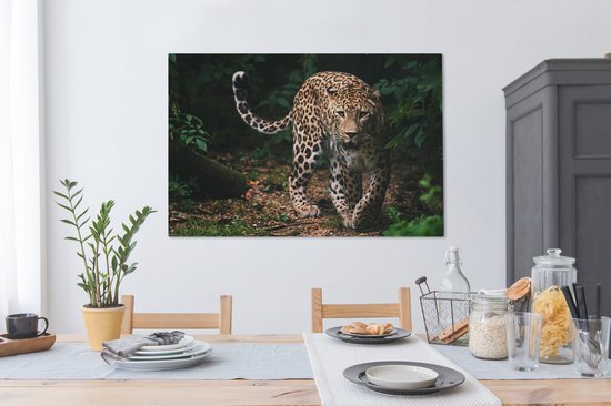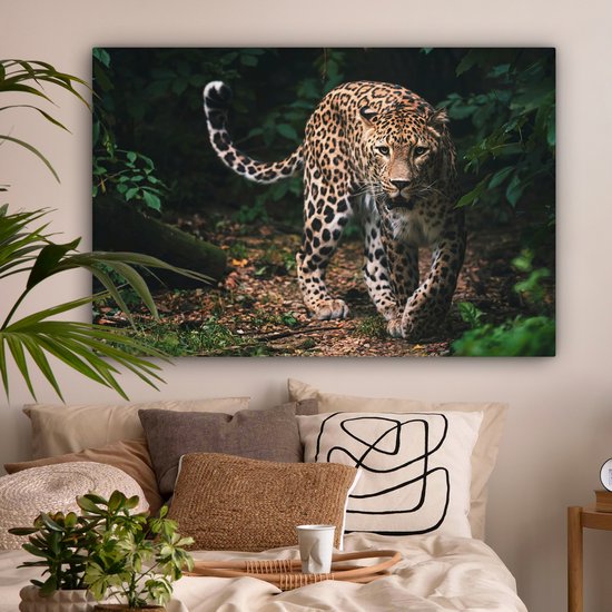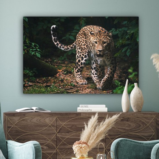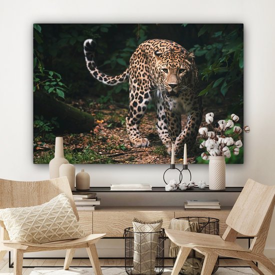 Toile - Léopard - Forêt - Feuilles - Décoration murale - 120x80 cm - Peinture Sur Toile - Toile Toile