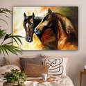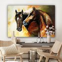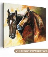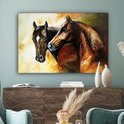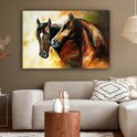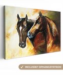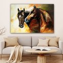 Toile - Peinture à l'huile - Paarden - Animaux - Jaune - 120x80 cm - Décoration d'intérieur - Peintures sur toile