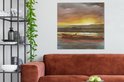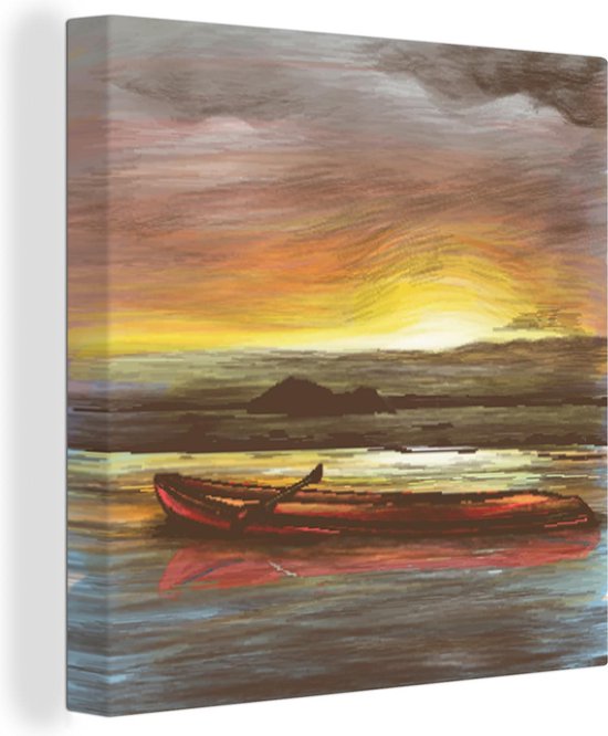 Toile Peinture Bateau - Mer - Soleil - 90x90 cm - Décoration murale