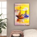 Toile - Peinture - Bateau - Water - Peinture à l'huile - Décoration murale - 90x140 cm - Peintures sur toile - Décoration murale