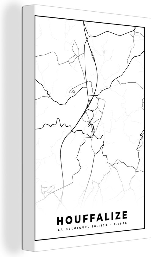 Toile Peinture België – Houffalize – Plan de Ville – Carte – Zwart Wit – Carte - 20x30 cm - Décoration murale