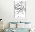 Tableaux sur toile - Carte - Gouda - Zwart - Wit - Salon - Chambre