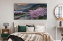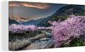 Toile Peinture Cerisier - Montagnes - Printemps - 160x80 cm - Décoration murale