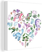 Toile Peinture Chambre d'Enfant - Coeur - Dinosaurus - 60x90 cm - Décoration murale