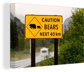 Panneau d'avertissement ours 120x80 cm - Tirage photo sur toile (Décoration murale salon / chambre)