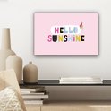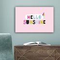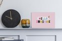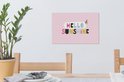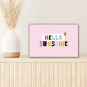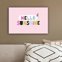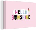La citation estivale "Hello sunshine" est décorée d'une glace et se dresse sur un fond rose.