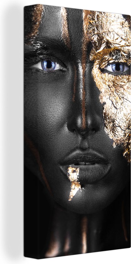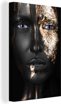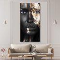 Toile Peinture Femme - Feuille d'Or - Zwart - Or - Luxe - 80x160 cm - Décoration murale