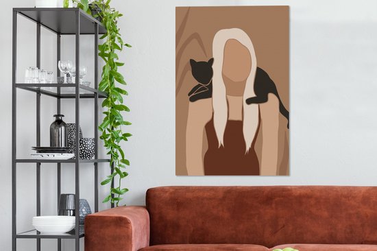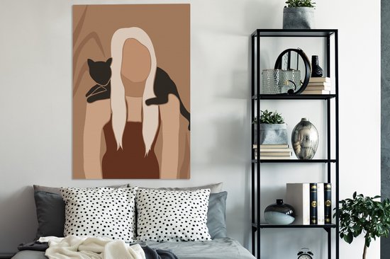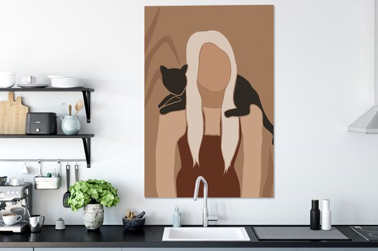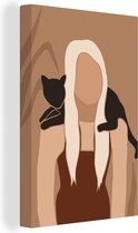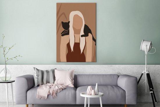 Tableaux sur toile - Fille - Chats - Minimalisme - Pastel - Salon - Chambre
