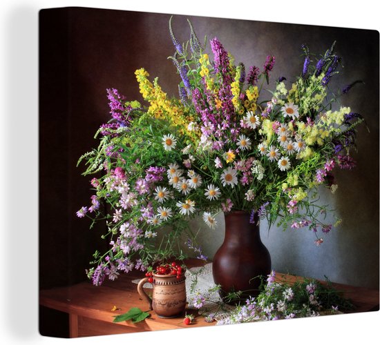 Toile Peinture Fleurs - Tableau - Nature Morte - Bouquet - Vase - 160x120 cm - Décoration murale XXL