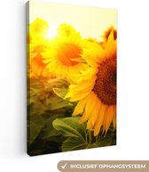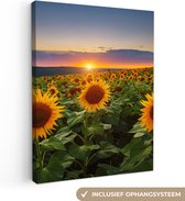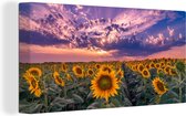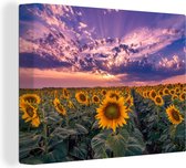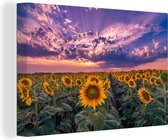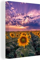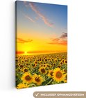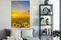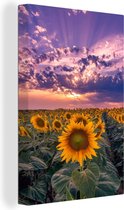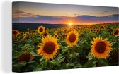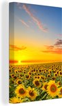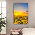 Ben êtes un amoureux de la nature et vous recherchez une décoration murale unique ? Alors cette toile est vraiment quelque chose voor jou! Sur cette toile, vous voyez un champ rempli de tournesols lors d'un coucher de soleil.