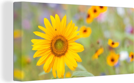 Toile Peinture Fleurs - Tournesol - Jaune - 40x20 cm - Décoration murale