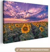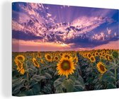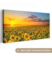 Toile - Peinture fleurs - Tournesol - Soleil - Nuages - Soir - Décoration murale - Photo sur toile - Canvasdoek - 160x80 cm - Salon