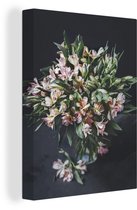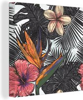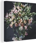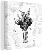 Toile Peinture Fleurs - Vase - Zwart - 90x90 cm - Décoration murale
