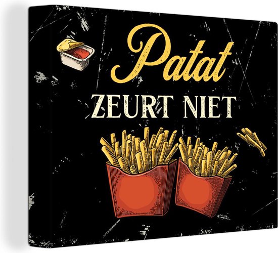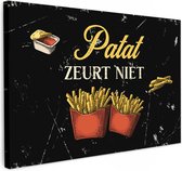 Toile Peinture Frites - Vintage - Citation - 160x120 cm - Décoration murale XXL - Cadeau femme - Cadeau homme