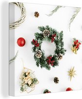 Toile Peinture Hiver - Noël - Couronne - 20x20 cm - Décoration murale Intérieure Noël - Décoration Noël Salon - Décoration Noël à la Maison
