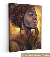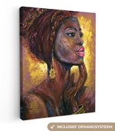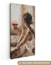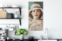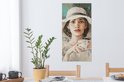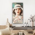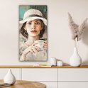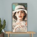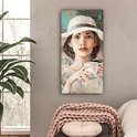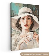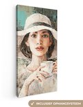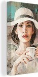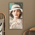 Toile - Peinture - Huile - Femme - Café - Chapeau - 40x80 cm - Peintures sur toile - Intérieur