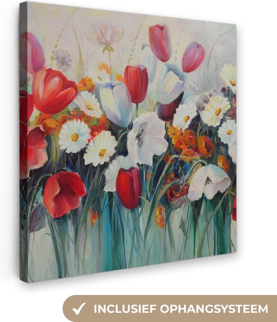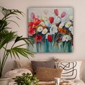 Toile - Peinture - Huile - Fleurs - Nature - 90x90 cm - Décoration - Intérieur