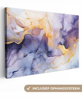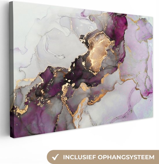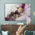 Toile Peinture Marbre - Abstrait - Or - Violet - 140x90 cm - Décoration murale