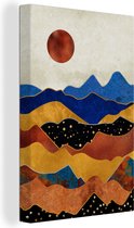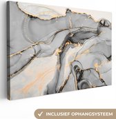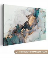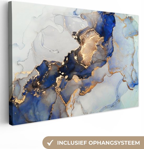 Toile Peinture Marbre - Blauw - Or - 140x90 cm - Décoration murale
