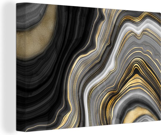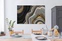 Toile Peinture Marbre - Pierre - Agate - Noir et Or - 140x90 cm - Décoration murale