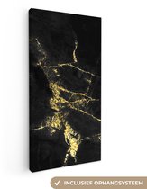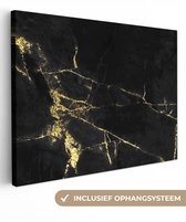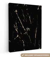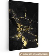 Tableau sur toile Marbre - Zwart - Or - Luxe - 60x80 cm - Décoration murale