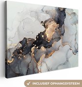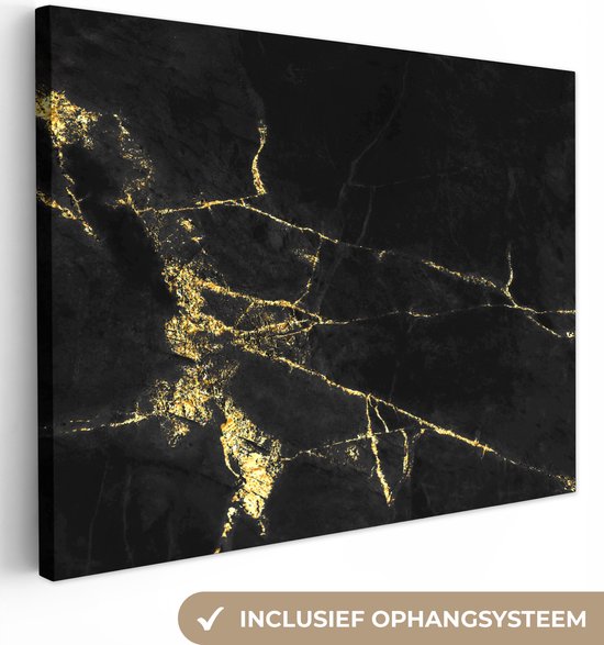 Toile Peinture Marbre - Zwart - Or - Luxe - 80x60 cm - Décoration murale