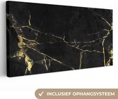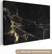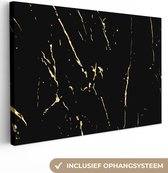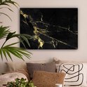 Tableau sur toile Marbre - Zwart - Or - Luxe - 90x60 cm - Décoration murale