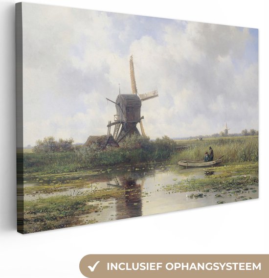 Toile - Peinture Moulin à vent - Willem Roelofs - Maîtres anciens - Art - 180x120 cm - Décoration murale - Salon
