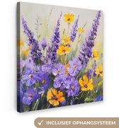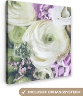 Toile Peinture Nature - Branches - Fleurs - 50x50 cm - Décoration murale