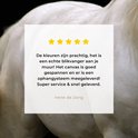 La photo est imprimée sur une toile robuste de 260 grammes de 0,41 mm d'épaisseur. Le lin est tendu étroitement sur un cadre en bois de deux centimètres d'épaisseur. Ce cadre en bois est en bois de pin certifié PEFC de qualité. Un système de suspension peut être commandé en option avec le produit pour fixer facilement l'impression au mur.