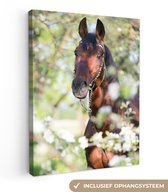 Toile Peinture Paarden - Blossom - Printemps - Animaux - 20x40 cm - Décoration murale