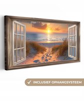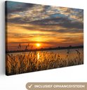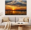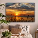 Donnez un air chaleureux à votre intérieur avec ce tableau sur toile ! Sur la toile, un coucher de soleil remplit l'environnement d'une lueur orange.