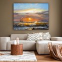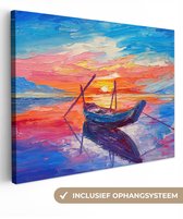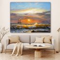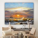 Toile - Peinture - Peinture à l'huile - Water - Bateau - Plage - Peinture - 160x120 cm - Décoration murale Art