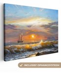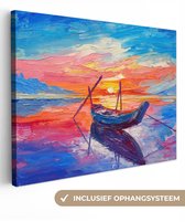 Toile - Peinture - Peinture à l'huile - Water - Bateau - Plage - Peinture - 40x30 cm - Décoration murale