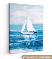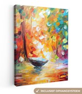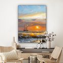 Toile - Peinture - Peinture à l'huile - Water - Bateau - Plage - Peinture - 90x120 cm - Décoration murale