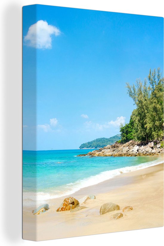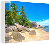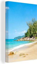 Toile Peinture Plage - Mer - Plantes - Tropical - 90x120 cm - Décoration murale