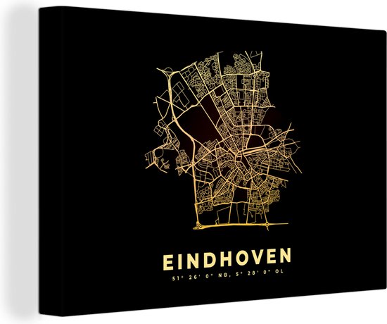 Toile Peinture Plan d'Etage - Plan de Ville - Carte - Eindhoven - Pays- Nederland - 120x80 cm - Décoration murale