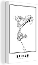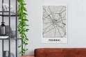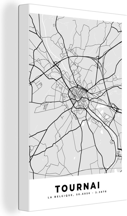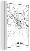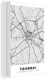 Toile Peinture Plan de Ville - Carte - België - Zwart Wit - Tournai - Carte - 40x60 cm - Décoration murale