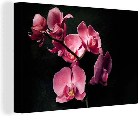 Toile Peinture Plantes - Orchidée - Fleurs - Rose - 90x60 cm - Décoration murale