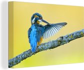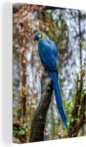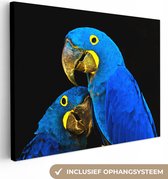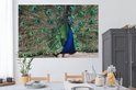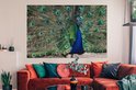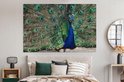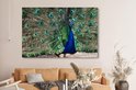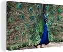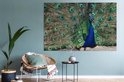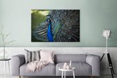 Toile Peinture Plumes de Paon - Blauw - Vogel - 180x120 cm - Décoration murale XXL