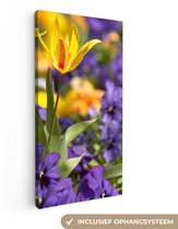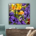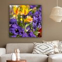 Toile Peinture Printemps - Fleurs - Couleurs - 90x90 cm - Décoration murale