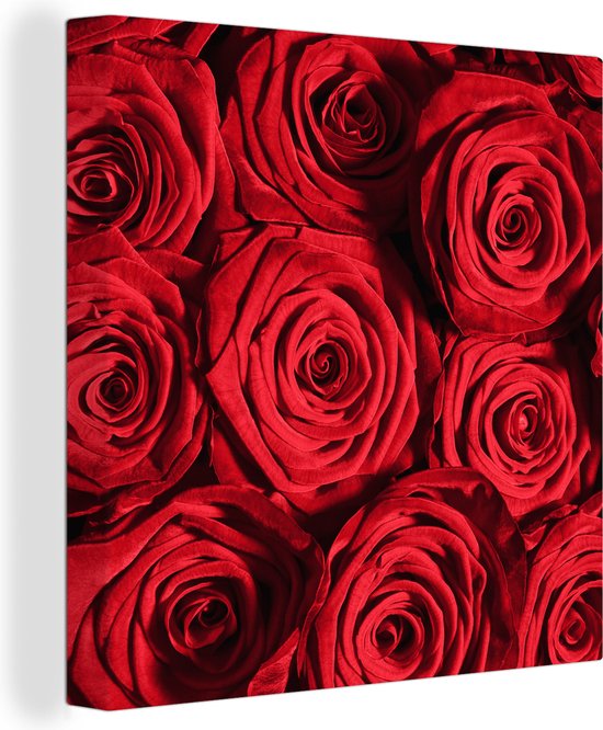 Toile Peinture Roses - Rose - Rouge - 20x20 cm - Décoration murale
