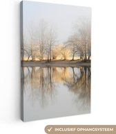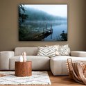 Toile - Peinture sur toile - Photo sur toile - Toile peinture sur toile - Toile Décoration murale - Nature - Lac - Forêt - Brouillard - 160x120 cm