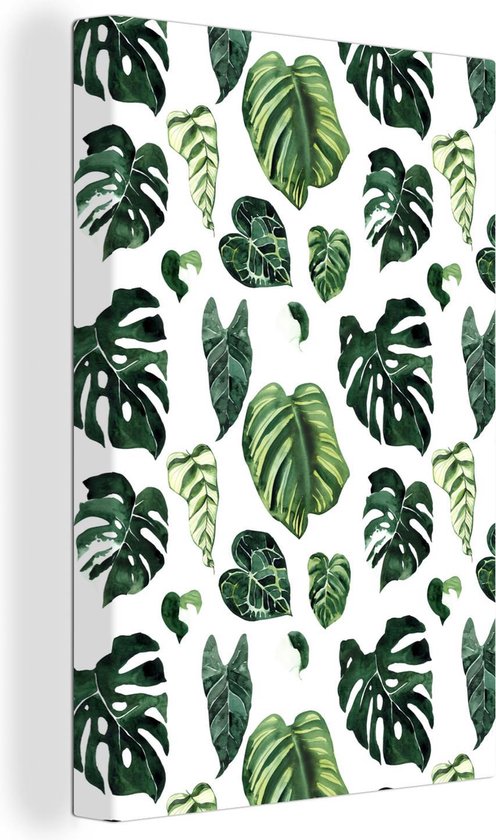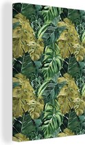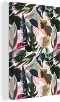 Toile Peinture Tropical - Feuilles - Vert - 80x120 cm - Décoration murale
