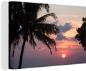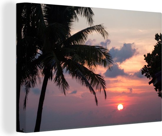 Toile Peinture Tropical - Palmier - Soleil - 90x60 cm - Décoration murale
