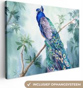 Toile Peinture Vert - Feuilles - Nature - 120x80 cm - Décoration murale