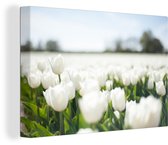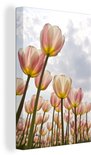 Toile - Rose avec tulipes blanches ciel nuageux - 20x30 cm - Décoration