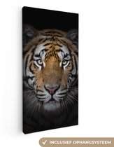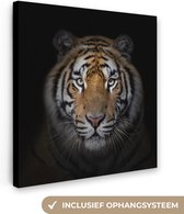 Un tigre sur fond noir. Apportez une ambiance cosy à votre intérieur avec cette toile. La toile est un ajout à votre salon, chambre ou bureau.