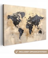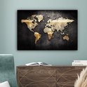 Toile Wereldkaart - 90x60 - Décoration murale Wereldkaart - Or - Zwart