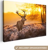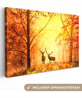 Écrit pour: Peintures sur toile Cerf - Brouillard - Automne - 120x80 cm - Décoration murale
